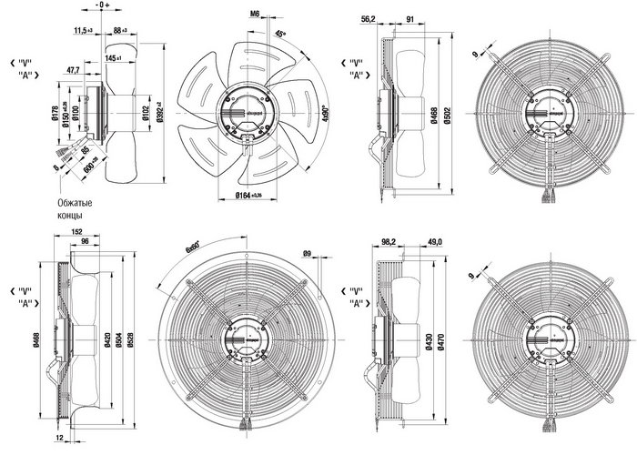 - Аэродинамическая совместимость вентиляторов, приводимых двигателями AC и EC (электронно-коммутируемых) в диапазоне от 130 до 990 мм