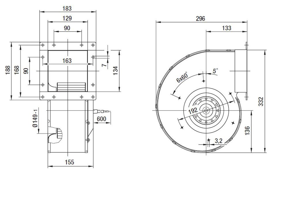 - Материал: Спиральный корпус и рабочее колесо из оцинкованной листовой стали