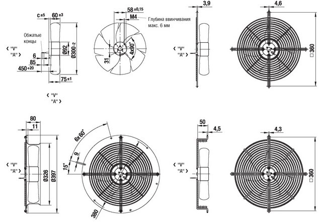 S – осевой вентилятор с защитной решеткой