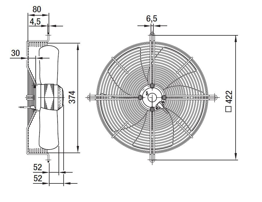 S – осевой вентилятор с защитной решеткой