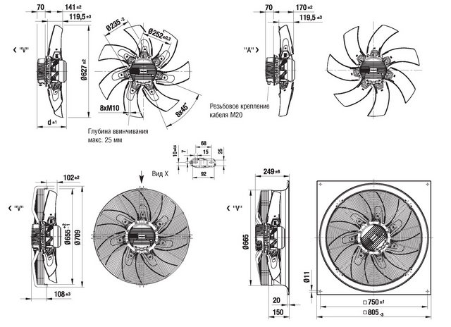 - Аэродинамическая совместимость вентиляторов, приводимых двигателями AC и EC (электронно-коммутируемых) в диапазоне от 130 до 990 мм